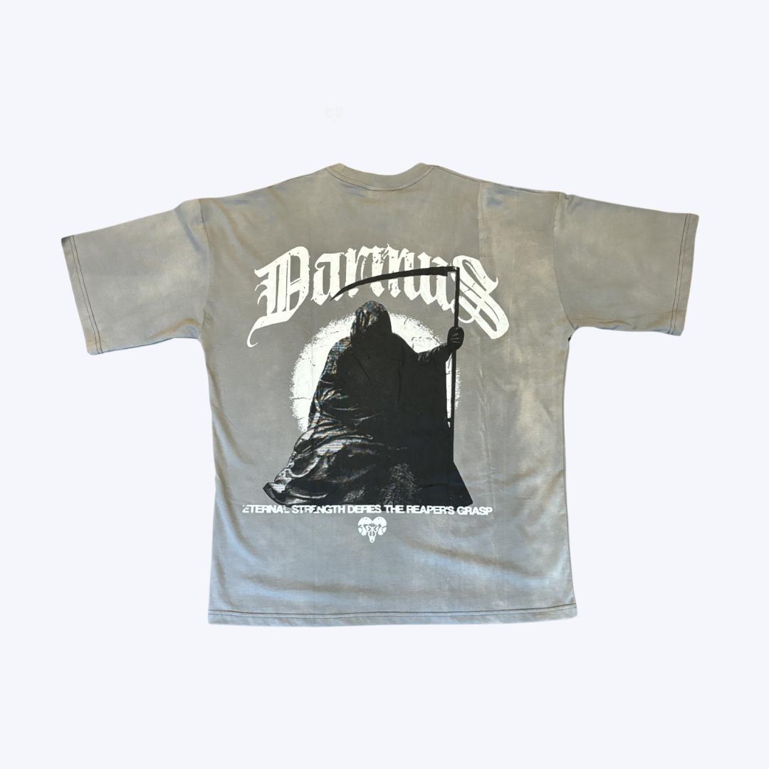 The Grim Reaper Oversized T-Shirt in acidwash grey with our Logo on the front. Part of the R.I.P collection