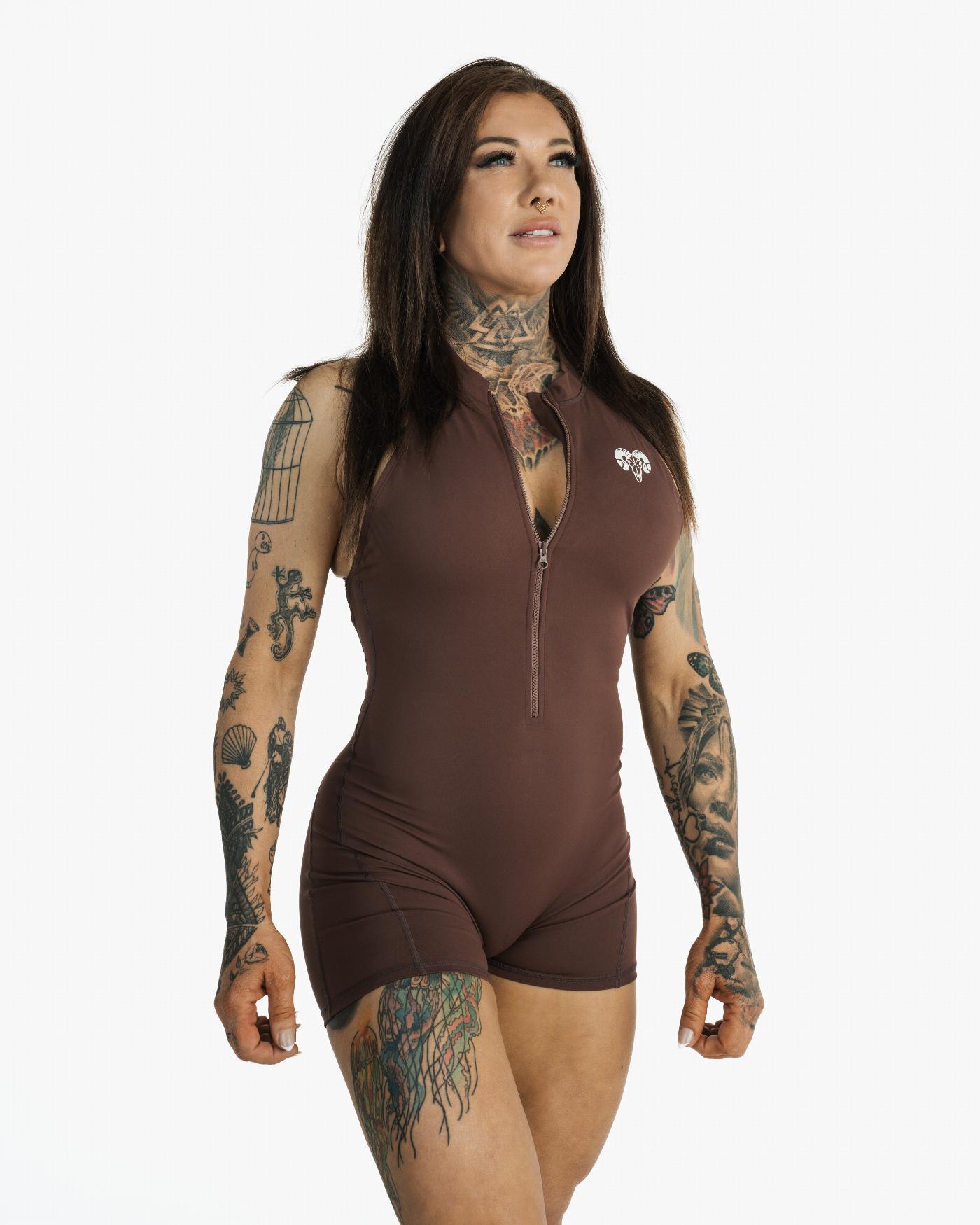 Womens Short Jumpsuit in Cool Brown